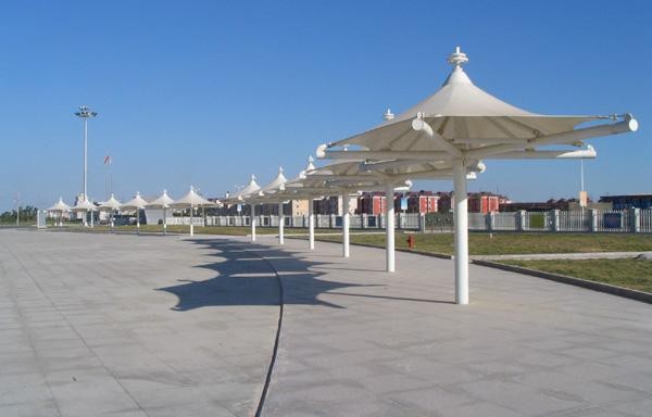 張拉膜結(jié)構(gòu)以造型和色彩為依托,結(jié)合當(dāng)?shù)氐娘L(fēng)土熱情和自然條件以及環(huán)境的不同,利用天馬行空的想法建造出傳統(tǒng)所無法實(shí)現(xiàn)的曲線和造型。膜結(jié)構(gòu)車棚是一座雕塑,一件藝術(shù)品,給人美的視覺享受。其實(shí)不僅僅是膜結(jié)構(gòu)車棚,我們可以在許多地方看見利用張拉膜結(jié)構(gòu)相同材料建造而成的各種建筑,不僅包括為了展示的藝術(shù)品,有些地方的公交車站也會(huì)使用,可見不只除了外觀的藝術(shù)性,實(shí)用性也是非常強(qiáng)的。